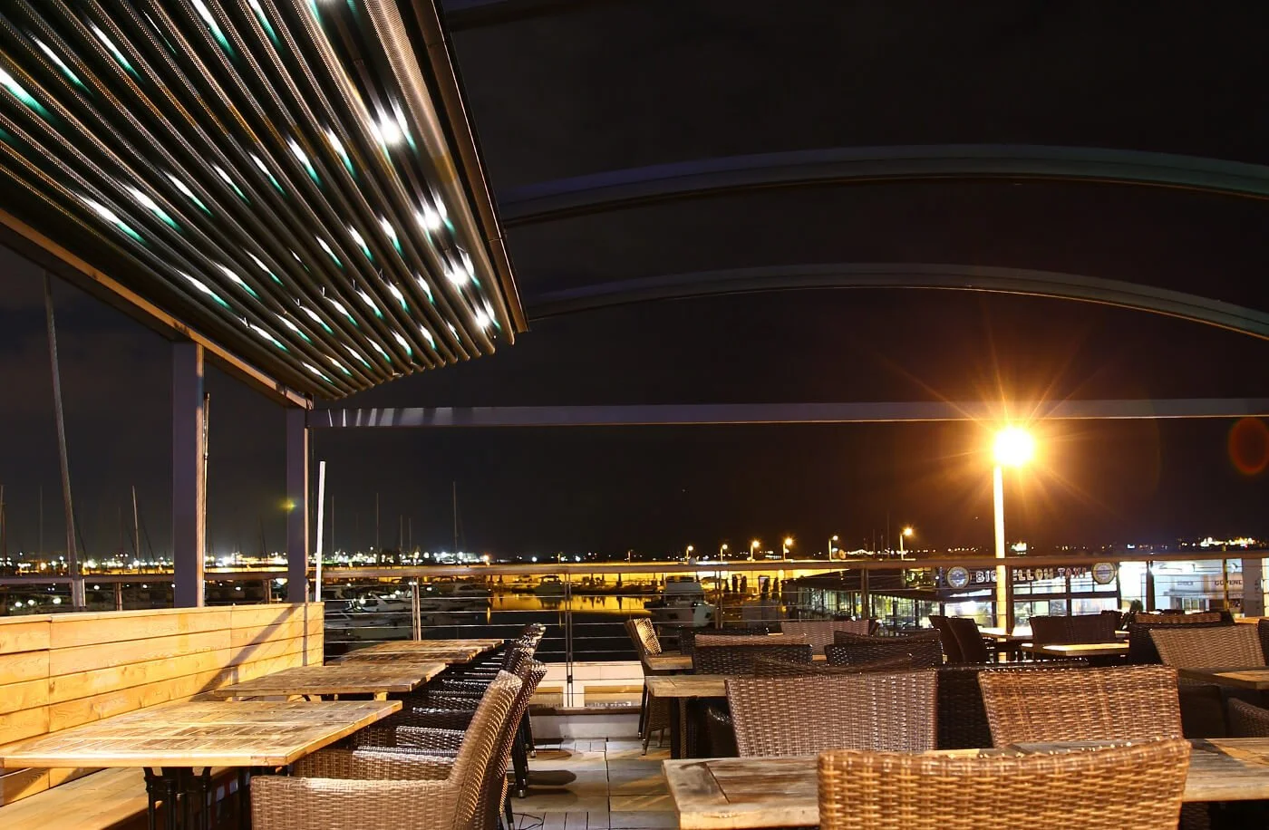 Pergotenda OXIA je vsestranski in robusten izdelek za pokrivanje velikih površin, podprt z jekleno konstrukcijo z radiusno strukturiranimi tirnicami. Ta konstrukcija daje vaši terasi večji volumen in impresiven učinek globine. Glavno konstrukcijo sestavljajo vodoravni in navpični nosilci, ki zagotavljajo stabilnost.